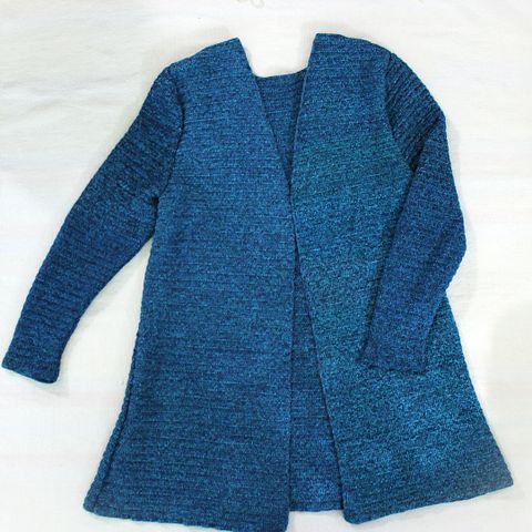Merseroiduista puuvillalangoista virkattu neuletakki. Koko n. XL-XXL.