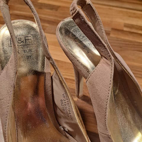 Hyvässä kunnossa muutaman kerran käytetty mokkaa olevat korkkarit. Muutama timantti irronnut mutta ei haittaa käyttöä eikä näköä.