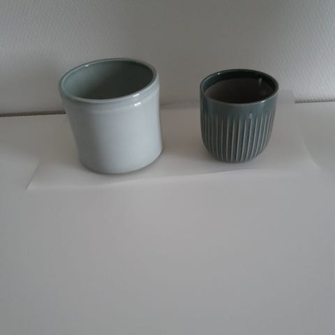 Yhdessä ruukussa ollut narureuna koristeena ja se lähti nyt irtoamaan. Ostaja voi halutessaan liimata sen takaisin. Se sopii ruukkuun hyvin mutta on pelkkä koriste ja ruukku on kaunis ilmankin.