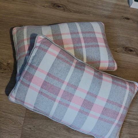 Tyynyt, sisustustyynyt, 2 kpl (ei päällisiä). Puhtaat, ei ole juuri käytetty. Ei ole olleet eläintaloudessa. Hinta 2 euroa/kpl.