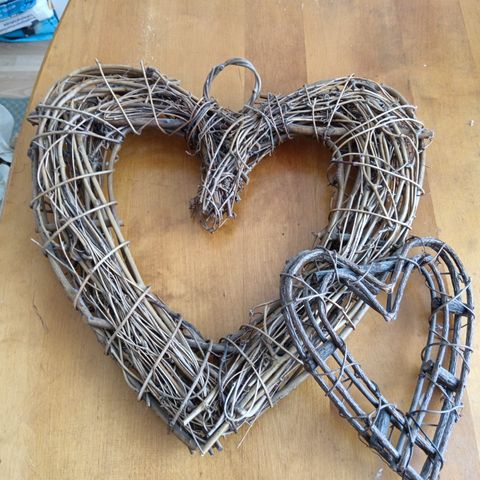 Myydään kaksi itsetehtyä kranssia, joissa virkatut kukat.