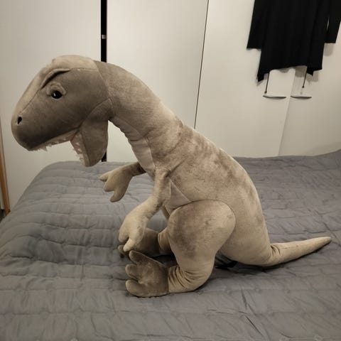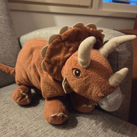 Myydään kuvan isokokoinen pehmeä, vihreä Triceratops- dinosaurus pehmolelu.