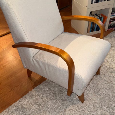Myytävän joskus 90-luvulla verhoiltu ehkä 50-luvun nojatuoli jonka saa pitkäksi. Lepo mahdollisuus 😊