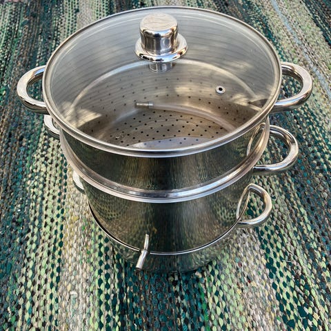 Hyväkuntoinen 8 litran teräksinen mehustin.