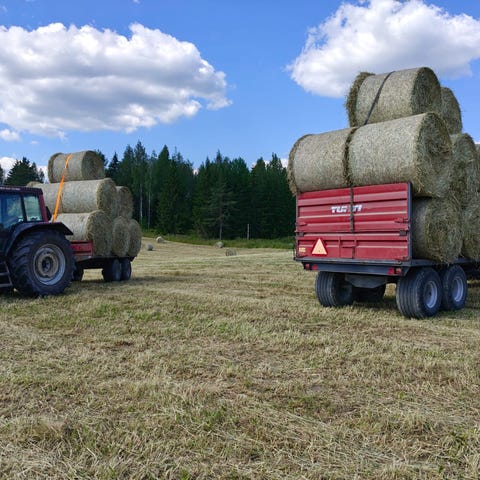 Heinä on niiton jälkeen kuivunut pellolla auringossa jonka jälkeen ajettu karhelle, paalattu ja muovitettu. Pyöröpaali painaa noin 170-200 kg ja on halkaisijaltaan 115 cm. Näitä pystyy siis kaksi henkilöä ja miksei yksikin siirtäämään rullaamalla jos tarvii.