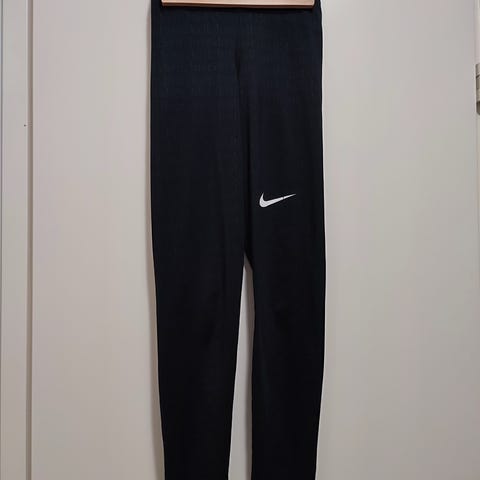 Lotus Leggingsin sini-valkokuvioiset treenitrikoot. Logo kulunut pesussa, ks. kuva, muuten siistit ja ehjät.