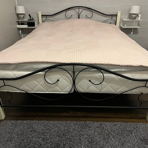 Sänky ruiskumaalattu mustaksi (ennen tumman sininen). Yleisilme käytössä siisti, mutta kulumia on. Helppo kasata. Ollut käytössä seuraavista vioista huolimatta: