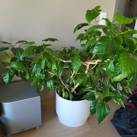 Kiinanruusu, joka kasvatettu rungolliseksi ja oksia taivutettu vaakatasoon. Toispuoleisuutensa ansiosta sopii seinän/ikkunan viereen. Tarvitsee paljon valoa. Rungon korkeus mullan pinnasta oksien haarautumiskohtaan 35 cm, oksista lisää korkeutta noin 10 cm. Leveys n.110 cm ja syvyys runkoon n. 60 cm. Noutona kiitos.