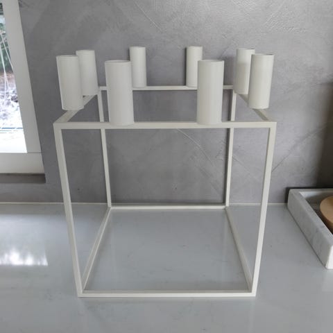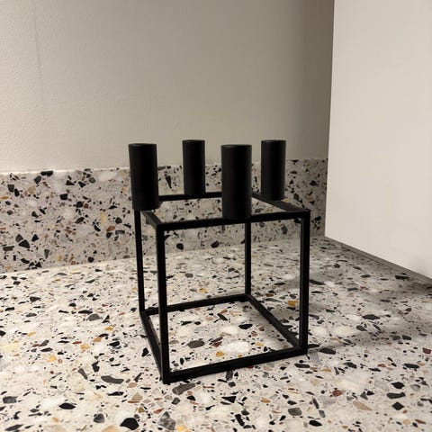 By Lassen / Audo Copenhagenin Light’In-lyhty on pelkistetyn tyylikäs. Kulmikkaan metallirungon sisään upotettu lasilyhty on mitoitettu niin, että siinä voi polttaa sekä lämpökynttilöitä että pöytäkynttilöitä, joiden halkaisija on enintään 4 cm.