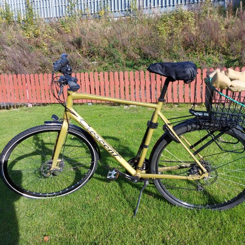 Hyväkuntoinen Saksassa valmistettu (rumpuvaihdin), alumiinirunkoinen miesten polkupyörä. Ei ruostetta. Säilytetty lämpimässä varastossa. Renkaat 28". Runko 622 mm. Jousitus satulassa. Vaihteet toimivat. Huollon jälkeen ajettu 200 km. Valmis pyöräilyyn.
