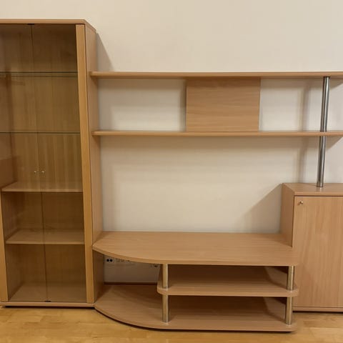 Myydään tv-taso+ vitriini+hyllykkö, kaikki yhdessä. Voi sijoitella miten haluaa, ei ole kiinnitetty toisiinsa.