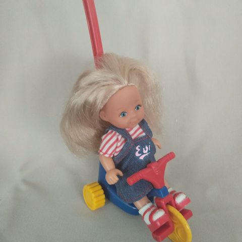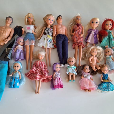 Myydään Evi ja Kelly -nuket. Kelly (vasemmalla) 4 euroa ja Evi (oikealla) 3 euroa. Yhteensä 6 euroa.