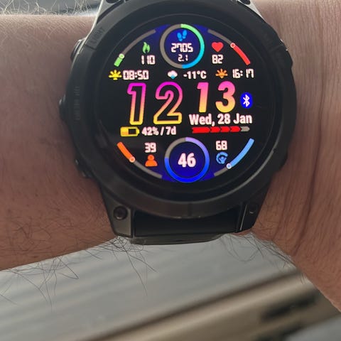 Garmin epix sapphire gen2 Titanium ostettu 2023 kellon lasi on virheetön ulkokehässä on kulma jälkiä.