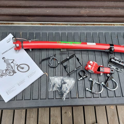 Kätevä apu pyöräretkelle, jos lapsi ei jaksa polkea vielä pidempiä retkiä. Huom. Tästä puuttuu yksi pieni osa (pallonivelpultti) joka voi tilata lisäosana ja maksaa noin 20€.