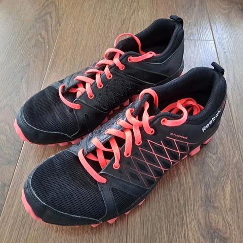Pariin kertaan kokeillut vaaleansiniset Reebokin lenkkarit. Kunto oikein hyvä.