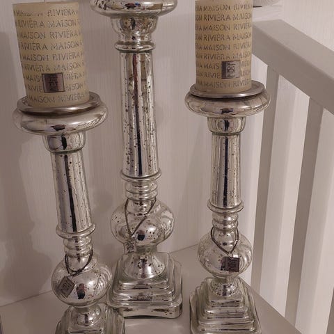 Myydään kaksi Riviera Maisonin kynttilänjalkaa, joihin myös kuvassa näkyvät kynttilät. Myydään tarjousten perusteella