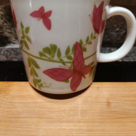 Hyväkuntoinen ehjä Arabian perhonen Teemamuki kruunuleimalla, käytetty saattaa olla pieniä käytön jälkiä