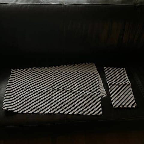 Kaksi valkoista kappaverhoa. Pit. 240 cm, korkeus 30 cm. Nouto