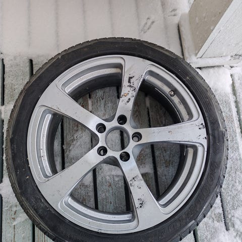 2kpl 10,5" leveää ja 2kpl 8,5" leveää. Suorat. Tuplajako; 5x112 ja 5x114,3. ET40 kapiammissa ja ET22 leviämmissä. Keskireikä 74.1. 225/45 ja 265/35 kumit, jotka ei uudet, mutta kesän menee vielä. Vanteissa on jälkiä.
