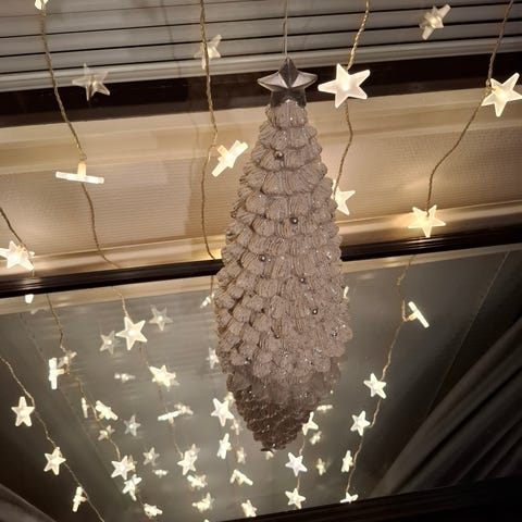 Kiva kuu koriste, josta roikkuu kimalle pallo