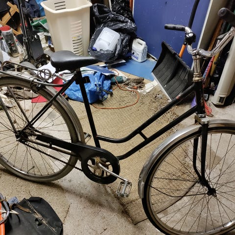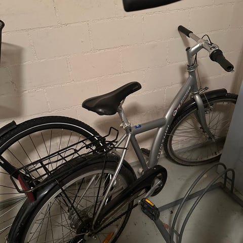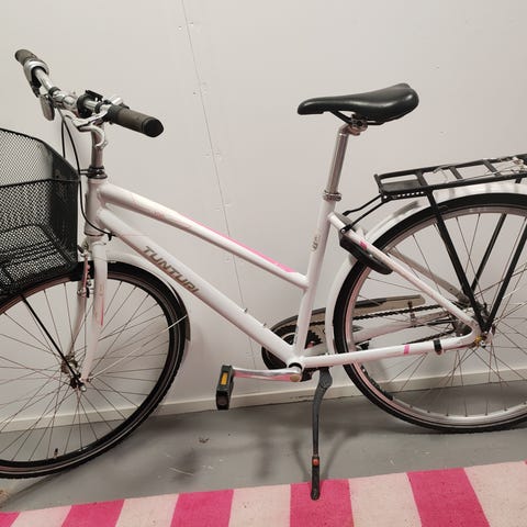 Kevyesti rullaava Tunturi She polkupyörä. 7-vaihdetta, jalka- ja käsijarrut. Kiinteä lukko, johon kaksi avainta. Valo ja tavarakoppa. Ollut käytössä n. 168 senttisellä.