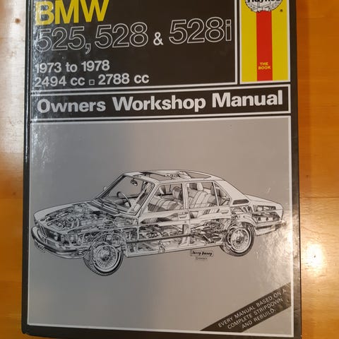 Kuvan 6-sylinteristen BMW-manuaali. Tallikäytössä ollut, kunto sen mukainen.