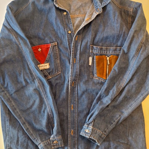 Siisti beigen-värinen farkkutyylinen lyhyt pusakka. Ajaton malli. Aivan uusi. Kokomerkintää en löydä, mutta uskon, että on kokoa XL. Kainalo-kainalomitta 62cm. Ostettu Espanjasta. Merkissä lukee Angelo Litrico, crafted goods.