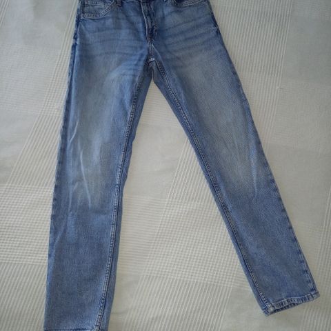 Oikein hyväkuntoiset tummansiniset slimfit farkut (normal mitoitus) 158cm. Taskuissa kulta/pronssi brodeeraukset.