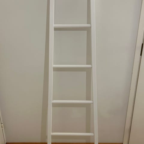 Siistit valkoiset sisustustikkaat. Mitat noin korkeus 103cm, leveys 48cm, syvyys 43cm, hylly 45x19 cm.