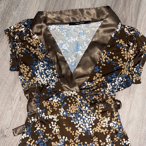 Paljon pidetty aikanaan. Kohtalainen kunto, pientä nukkaa havaittavissa, Halterneck oli silloin liian pitkä niin tehty tämmöinen ompeluviritys, joka oli itseasiassa ihan siistin näköinen topin ollessa päällä, vaikka tehty vaaleanpunaisella langalla :D tämän voi ostaja halutessaan ratkoa, eli toppi ehjä koko niskalenkin matkalta, jos virityksen avaa. Paljetit v- muotoisesti ja pieni paikattavissa oleva reikä näkyi olevan kankaassa sauman kohdalla kun tarkasteli. Päällä ollessa jää rypytykseen piiloon, paikkaus jää ostajalle.