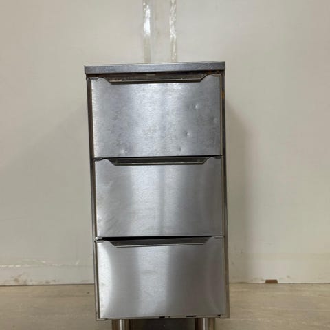 Laatikosto esim. Keittiötarvikkeille tai toimistoon. Mittatilaustyönä tilattu tason alle, joten ei sisällä päälislevyä. Pyörillä liikuteltava. Myynnissä 2kpl (70€/kpl)