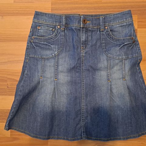 Kerran pidetty ja pesty farkkuhame. Edestä pituus 43 cm ja takaa 45 cm.