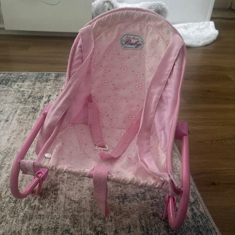 Mummolassa leikkitouhuissa vähän käytetty nuken babysitter, on kuin uusi. Babysitterin koko pituus 40cm ja leveys n.20cm. (Kuvan nukke ei ole myynnissä). Nouto Malmilta.