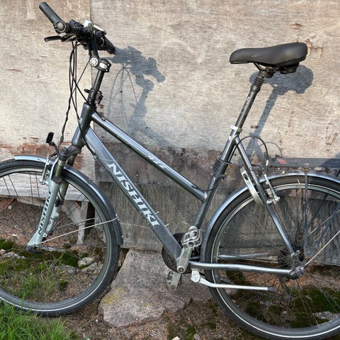 Vanha mutta vähän käytetty Bianchi hybridi pyörä Shimanon vaihteilla, levy jarruilla ja jousto haarukalla edessä. Etu rattaat tarvis vaihtaa. Joku oli "lainannut" pyörää, ajanut ilmeisesti jonkun kanttarin/kiven yli ja katkonut pari rattaan hammasta. Itellä ei näin 2 "lainaus" kerran jälkeen enää motivaatio riitä.