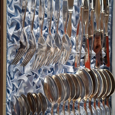 Sarja sisältää myös pihviruokailuvälineet 6 hengelle. Kromi-vanadiini-molybdeeniterästä, karkaistut, konepestävät.