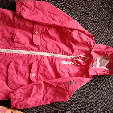 Hyväkuntoinen, ehjä takki, missä kivoja trukin kuvia. Huppu irrotettava.