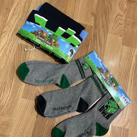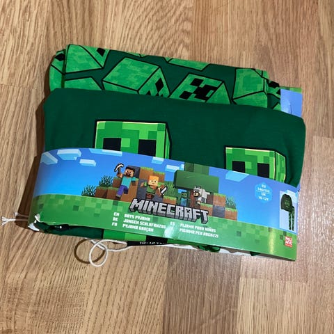 Myydään tarpeettomina hyväkuntoisia lasten Minecraft-aiheisia vaatteita settinä. Koko 134/140 cm.