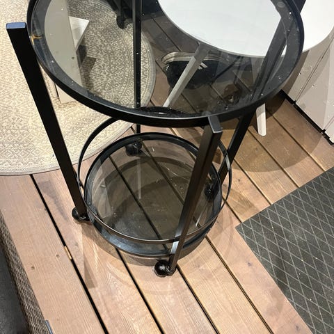 Pienehkö puolipyöreä pöytä eteiseen, maks 40 cm leveä