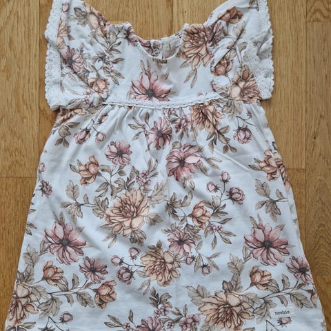 Myydään siistissä kunnossa oleva Newbie mekko koko 86. Pesty hajusteettomalla pesuaineella.