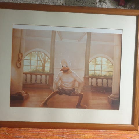 Kaikki taulut ovat kullanvärisissä kehyksissä ja hyväkuntoisia. Tyylikkäitä, tunnettuja Stenvallin teoksia, jotka tuovat ripauksen huumoria ja ajateltavaa kotiin tai toimistoon.