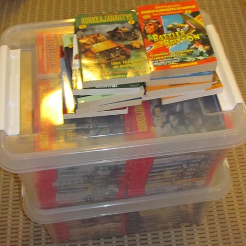 1. Korkeajännitys Tyrmääjä 1964 No 16. Kansi irti. 2. Korkeajännitys Taistele ja kuole 1969 no 16. Kansi irti ja takakansi puuttuu. 3. Korkeajännitys Tiikerin ääni. 1981 Etukannesta pikku pala pois. 4. Korkeajännitys Operaatio peltikala 1983 No 10