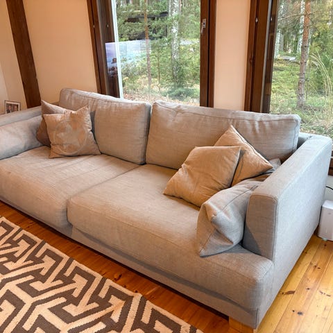 Myydään divaanisohva kätisyys vaihdettavissa. Irrotettavat ja pestävät päälliset. Leveys 240, syvyys 100 ja divaaniosa 145. Jämäkkä ei ole menettänyt muotoaan. Vain nouto.