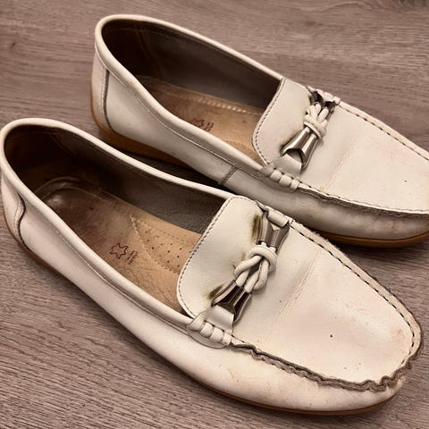 Nahkaiset valkoiset tarrakengät
