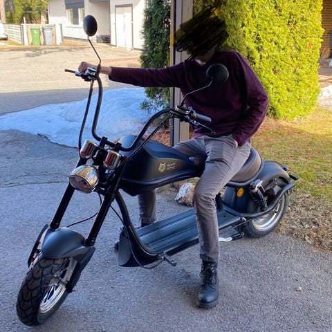 Tämä Kruiser on varustettu 0,7kwh akulla, hydraulilevyjarruilla, sekä 8-tuumaisilla tubeless pyörillä. Varusteluina vielä etuvalo, akun varausmittari ja varashälytin. Maksiminopeus 25km/h sekä yhdellä latauksella jopa 15-35km ajomatkaa. Pientä käytönjälkeä löytyy, mutta muuten toimiva Kruiser.