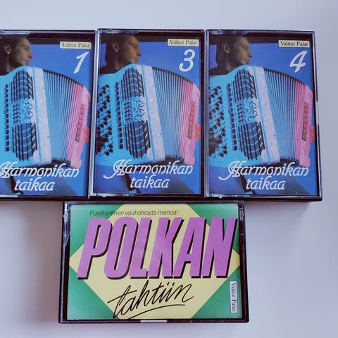 C-kasetit Harmonikan taikaa 1-4 ja Polkan tahtiin.