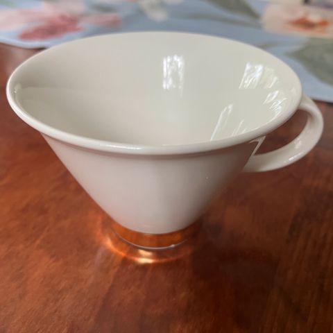 Yksittäinen käyttämätön kahvikuppi Inkeri Leivon Arabialle suunnittelemasta Harlekin Gold -sarjasta.