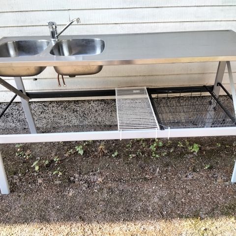 Tiskipöytä pihakeittiöön tai mökille myös kalanperkus.mitat P-1420 l-600 k-910 kansl ja viemäri putki ovat uusia.