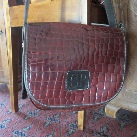Charles Jourdanin pyöreä nahkainen laukku. 60-luvun space age -tyylinen mutta luultavasti 70- tai 80-luvulta. Made in France.