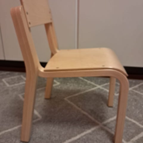Pieni pahkatuoli lasten kokoa. Istumakorkeus 35 cm, kokonaiskorkeus n. 58 cm. Ok siisti kunto.