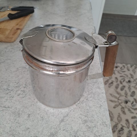 Iso Pyrex perkolaattori kahvinkeitin (n.10 kuppia), ns. pulputuspannu. Pannu on uutta vastaavassa kunnossa ja ollut vähällä käytöllä.